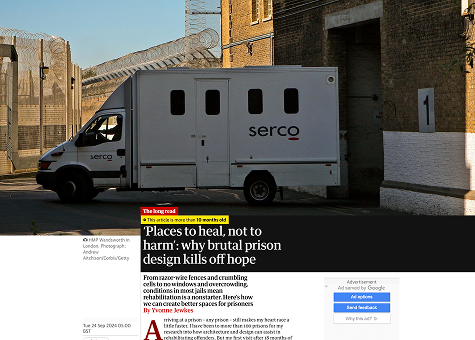 My research has been instrumental in fundamentally changing the thinking of the personnel I’ve worked with in prison services, correction services and ministries of justice, re-framing their long-term strategic planning decisions and thinking differently about people in prison. One small but significant influence I’ve had is in the design of cell windows. Prisons in England and Wales no longer have bars on the windows for the very first time in this country’s penal history. I also advise on design in the mental health sector. Read more about my work in this area by clicking the link at the top.